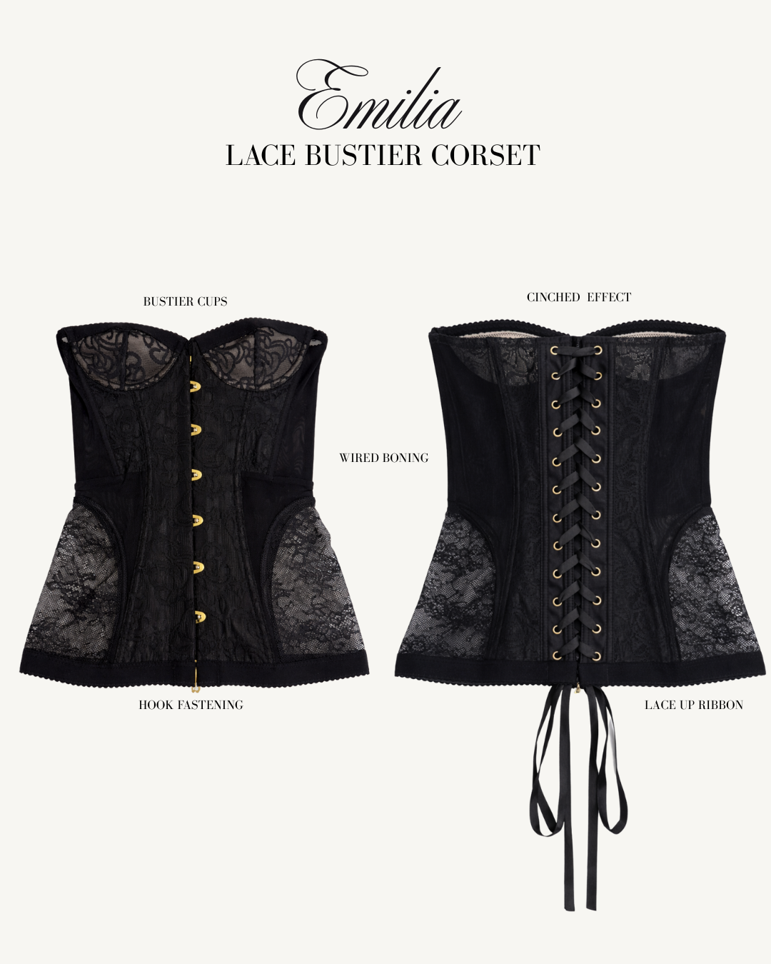 EMILIA lace detail bustier corset BLACK