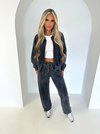 TESSA zip up bomber style jumper straight leg tracksuit ACID WASH DARK GREY